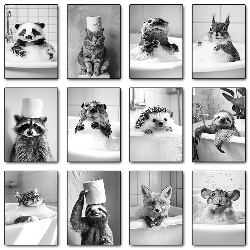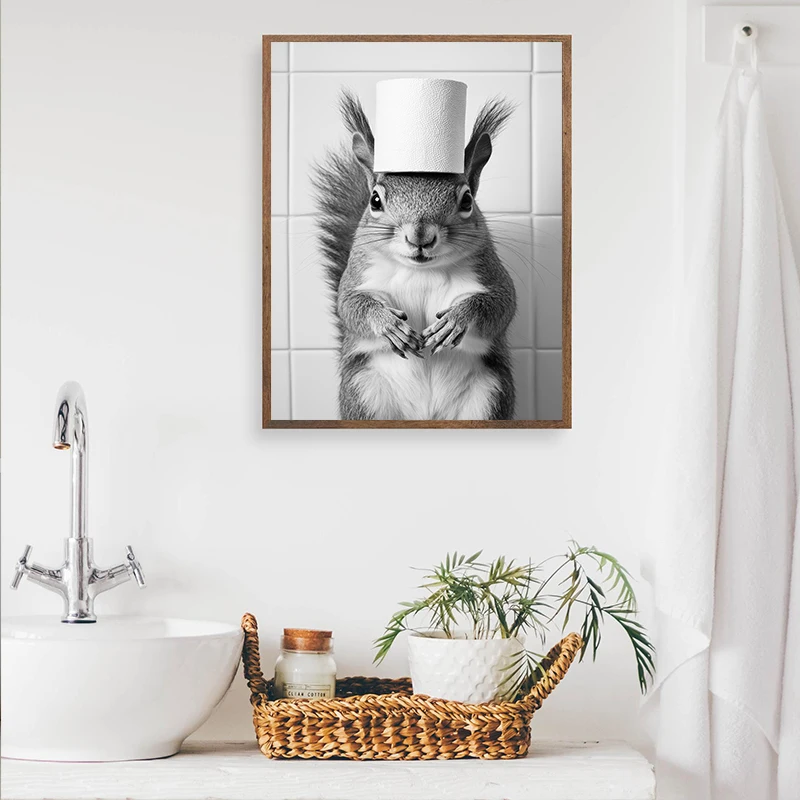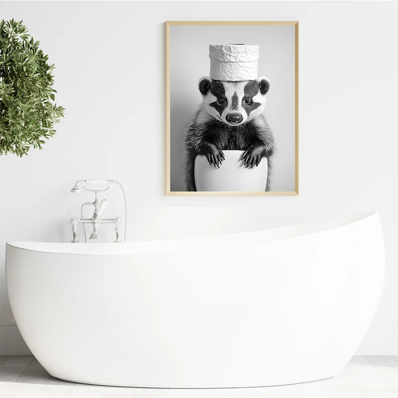 Black and White Raccoon Animal Poster Canvas Painting Wall Art Bathroom Living R